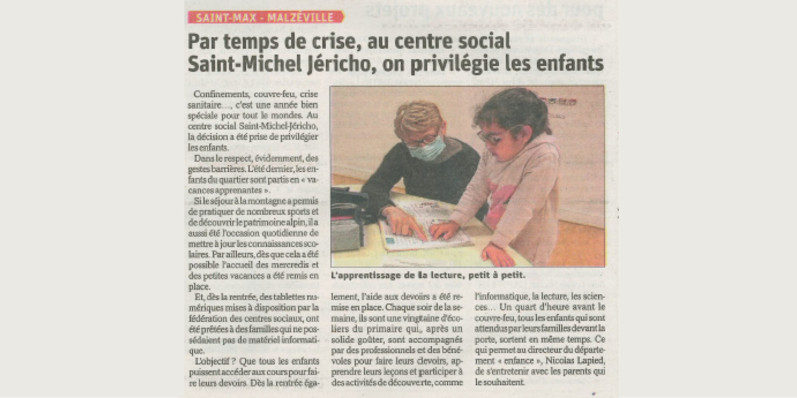 « Merci à #EstRépublicain pour ce focus sur les activités du Centre Social @LeoLagrange Saint-Michel #Jéricho : Bravo à l’équipe pour sa mobilisation »