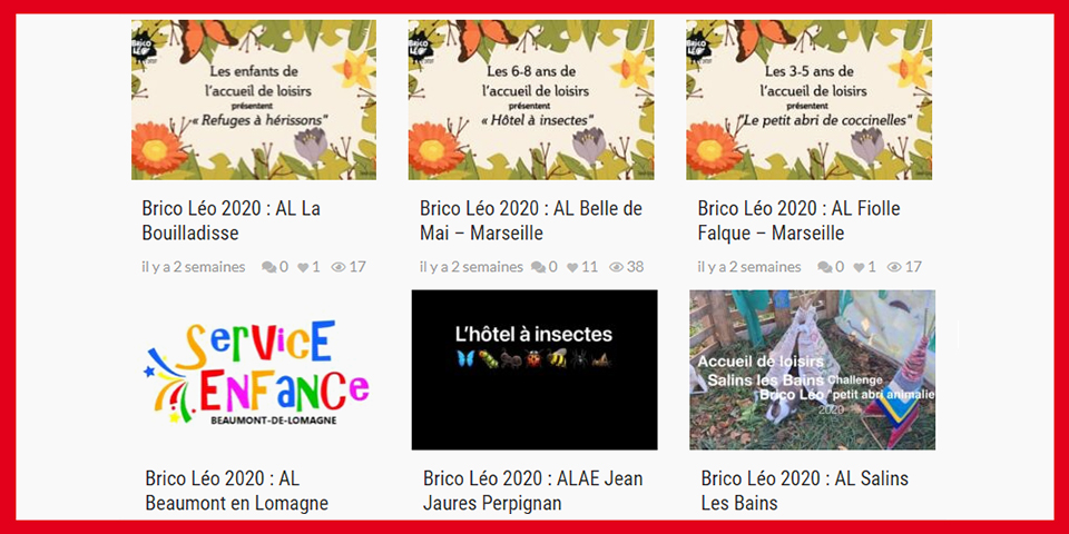 L’été dernier, un nouveau challenge Brico Léo a été lancé à destination de toutes les structures petite enfance et enfance. Le thème de ce nouveau challenge était : « petit abri animalier ». Toutes les vidéos sont en ligne, c’est le moment d’aller voter !